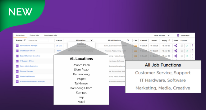 Managing a high number of job listings is now easier than ever. JobNet’s Employer Dashboard has been updated with additional filters to segment and organise active job posts by Location and Job Function allowing talent acquisition teams to review job listings faster, and focus on higher-priority vacancies, or jobs by location (eg. the provinces), or by Job Function (eg. Sales roles) quickly and effectively.