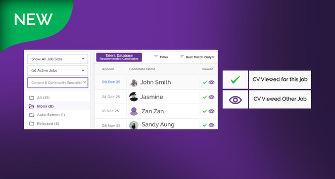 Coordination and team collaboration is an important foundation for an efficient recruitment process. The JobNet ATS (Applicant Tracking System) now features a status icon that indicates if a candidate’s application has been viewed by a Recruiter for this particular job post, and a status icon indicator for when a particular candidate has been viewed by other hiring managers for a different job vacancy within the organisation.